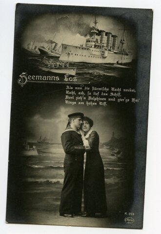 1. Weltkrieg, 5 patriotische Ansichtskarten "Seemanns Los", datiert 1915