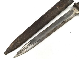 1. Weltkrieg, Seitengewehr M84/98 mit preussischer Abnahme von 1915. Ungereinigtes Stück