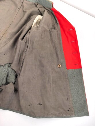 1. Weltkrieg, kleiner Rock für Generale ( Litewka ) Modell 1915. Diverse stärkere Beschädigungen, viele Ordenschlaufen, sietz der großen Kragenspiegel deutlich erkennbar. Selten