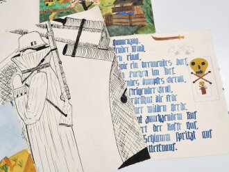 17 Zeichnungen eines Schülers der 3. und 4. Schulklasse datiert 1940/41. Jeweils 21 x 28cm