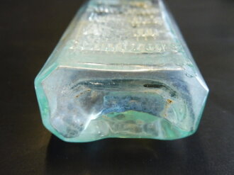 1.Weltkrieg, Flasche "Schutzsalzlösung zum Tränken des Atemschützers" Unten rechts ein kleines Loch, sonst guter Zustand