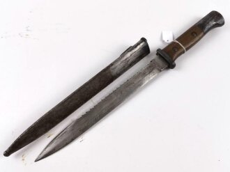 1.Weltkrieg, Seitengewehr M84/98 mit Sägerücken. Eigentumstück, leider unschlau gereinigt