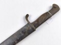 1.Weltkrieg, Seitengewehr M98/05 mit preussischer Abnahme von 1915. Scheide alt überlackiert, Hersteller Eickhorn Solingen. Ungereinigtes Stück