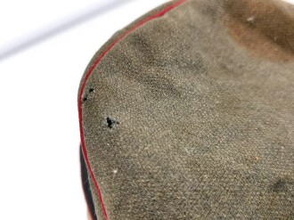 1.Weltkrieg, feldgraues Krätzchen für einen Angehörigen der Artillerie. Stark getragenes Kammerstück, die Kokardem original, aber unschlau nachgemalt