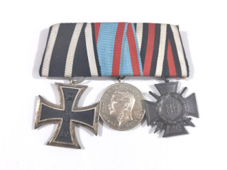 1. Weltkrieg 3er Ordensspange bestehend aus Eisernen Kreuz 2. Klasse 1914, Hessen Medaille für Tapferkeit, Ehrenkreuz für Frontkämpfer