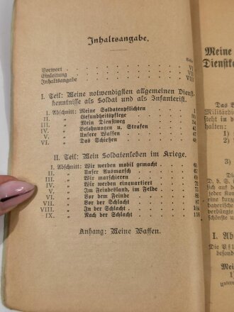 Unterrichtsbuch für den bayrischen Infanteristen und Jäger, Kriegsausgabe 1914 mit etwa 150 Seiten