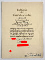 Großformatige Beförderungsurkunde eines Hauptmann zum Major, ausgestellt 19. juli 1940 mit gedruckter Unterschrift von Adolf Hitler und eigenhändiger Unterschrift Generalfeldmarschall Walther von Brauchitsch