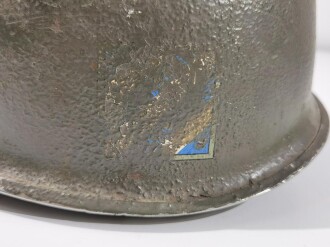 U.S. Stahlhelm nach 2.Weltkrieg. Weiterverwendeter Innenhelm sowie Glocke aus der Zeit des 2.Weltkrieg, jeweils weitergetragen und mit neuem Anstrich versehen, der Helmkinnriemen ebenfalls erneuert