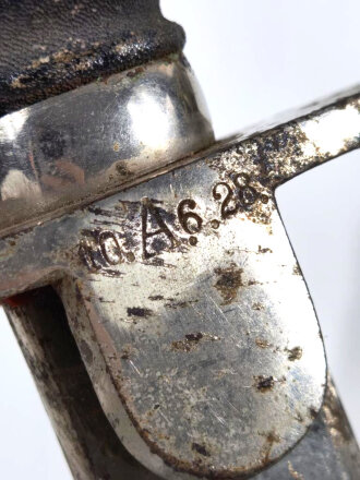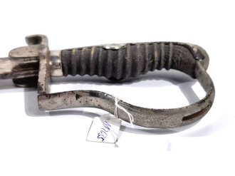vernickeltes Gefäß, Griff mit Fischhaut, Drahthilze fehlt, Parierstange mit Truppenstempel 10. Artillerieregiment, ungereinigtes Stück Dieser Artikel fällt in den Anwendungsbereich des WaffG und wird nur an Personen geliefert, die das 18. Lebensjahr vollendet haben.