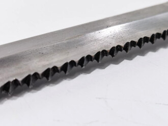 1.Weltkrieg Seitengewehr Modell 14 mit Sägerücken, Abnahmestempel auf Klingenrücken und auf Tragehaken, genieteter Griff, Hohlkehle rund auslaufend, Hersteller Samson Werk, Gesamtlänge 47 cm,