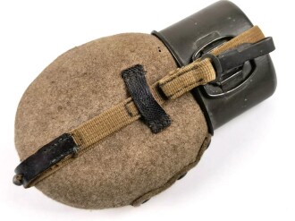 Feldflasche Wehrmacht, getragenes , ungereinigtes Stück, der Becher datiert 1944