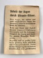 Allgemeine Schutzbrille Wehrmacht in Kunstlederhülle, ungetragenes Stück mit dunklen Ultrasin Gläsern, Beizettel von 1942 innliegend