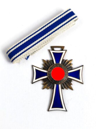 Ehrenkreuz der Deutschen Mutter ( Mutterkreuz ) in Bronze mit ungetragenen Band, Sehr guter Zustand