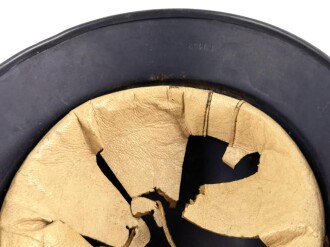Stahlhelm Luftschutz, Originallack, Abzeichen gedunkelt, Innenfutter aus Ersatzmaterial, Q64