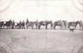Postkarte, Deutsch Südwestafrika "Gebirgsbatterie auf Maulesel verladen", in den Ecken Abdrücke aus Album