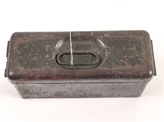 Blechkasten für Ersatzteile Wehrmacht. Originallack, 10 x 8 x 21cm