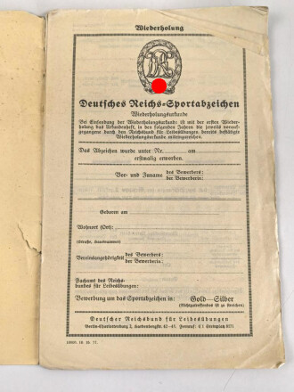 Reichssportabzeichen DRL in bronze, Urkundenheft für einen Angehörigen der Landespolizei Mannheim. Dazu ein Begleitschreiben des DRL