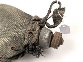 1. Weltkrieg , Feldflasche aus Blech mit Bezug aus Ersatzmaterial. Ungereinigtes Stück