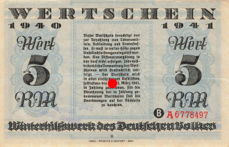 Winterhilfswerk des Deutschen Volkes 1940 1941, Wertschein 5 Reichsmark