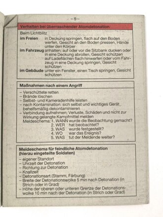 Bundeswehr, "Taschenkarte ABC Abwehr aller Truppen" vom August 1985