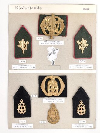 Niederlande, Sammlung Rang und Barettabzeichen Heer, teils auf Karton getackert