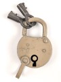 Wehrmacht Vorhängeschloss "Bora 1944", Originallack, Neuwertig mit zwei Schlüsseln, so auch an den Motorradpacktaschen verwandt