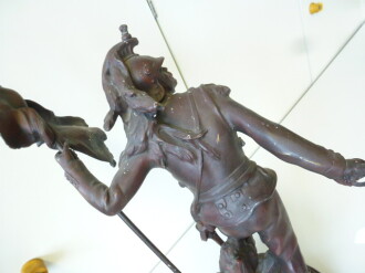 Frankreich, Figur Dragoner um Jahrhundertwende, wohl Schleuderguss auf Holzsockel, Höhe 55cm, ungereinigtes Stück, sehr Dekorativ