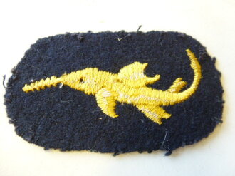 Kriegsmarine Bewährungsabzeichen für Kleinkampfmittelverbände maschinengestickte Stoffausführung auf dunkelblauem Tuch. Ausgeschnitten und getragen. Selten