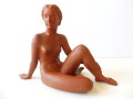 Weiblicher Akt aus den 1930iger Jahren aus rotbrauner Keramik, am Boden undeutlich markiert. Höhe 23cm