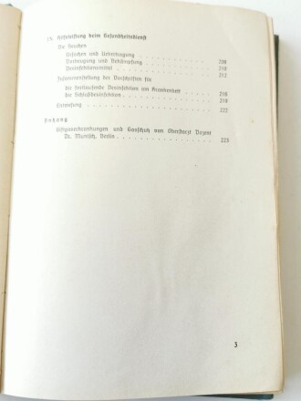 Amtliches Unterrichtsbuch über Erste Hilfe, datiert 1938, 263 Seiten, A5, Rücken lose