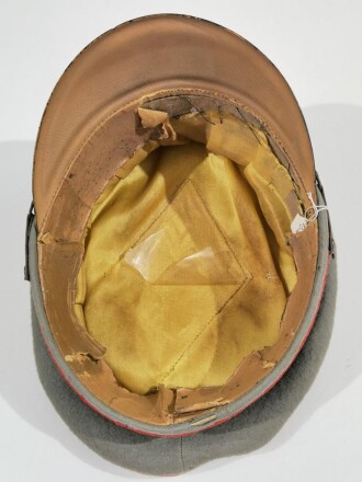 Heer, Schirmmütze für Mannschaften der Artillerie. Diverse Mottenlöcher, Schweißleder defekt, ungereinigtes Stück