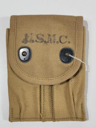 U.S. Army WWI, AEF Ammunition Pouch M1918 for . 45 automatic pistol, "679 P.B. & Co. 7 - 1918", vgc, the "USMC" stenceling is most likely modern added