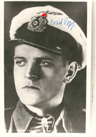 Deutschland nach 1945, Korvettenkapitän Erich Topp, eigenhändige Unterschrift auf Repro-Foto, 8,5 x 13 cm, guter Zustand