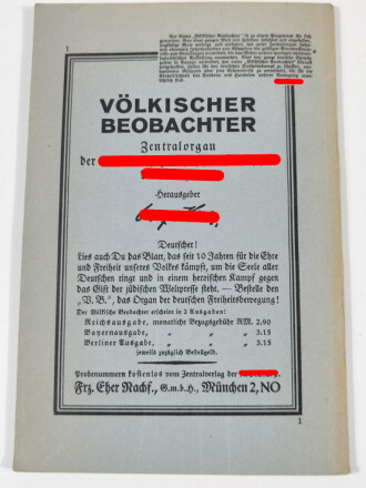 "Das Programm der NSDAP" und seine weltanschaulichen Grundgedanken von 1930. Sehr guter Zustand