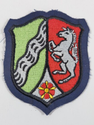 Ärmelabzeichen "Polizei Nordrhein-Westfalen" auf blauem Untergrund