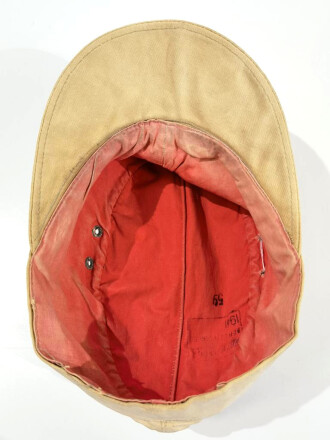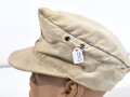 Afrikakorps Heer, Feldmütze für einen Offizier. Getragenes, ausgeblichenes Stück datiert 1941. Der Soutachewinkel vorschriftsmäßig entfernt