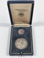 Allgemeiner Deutscher Automobilclub ( ADAC ) Verdienstmedaille für sportliche Organisation in silber mit Ehrennadel im Etui. Guter Zustand, im Etui