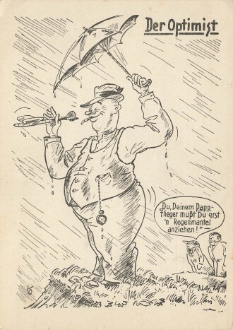 Ansichtskarte DLV "Der Optimist, Du, Deinem Pappflieger musst du erst 'n Regenmantel anziehen"