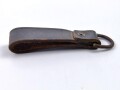 Aufschiebeschlaufe für Querriemen oder Gehänge zum Dienstdolch, schwarzes Leder. Gesamthöhe ohne D-Ring 8cm