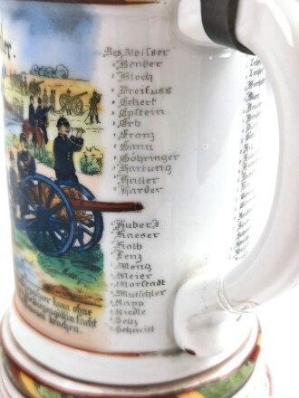 Baden, Reservistenkrug eines Angehörigen 3. Badisches Feldartillerie Regiment Nr. 50 Karlsruhe. Kanone lose, sonst normale Gebrauchsspuren, ungereinigtes Stück