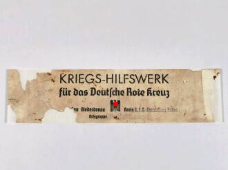 Banderole für die Sammelbüchse Gau Niederdonau "Kriegs-Hilfswerk für das Deutsche Rote Kreuz", 9 x 35 cm, verschmutzt, ausgebessert