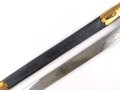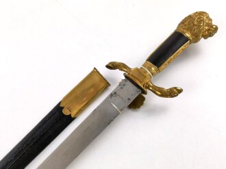 Bayern , Dienst Hirschfänger für höhere Forstbeamte. Beidseitig ziselierte Klinge markiert " Mohr & Speyer Berlin" Die Scheidennaht zum Teil offen, sonst sehr guter Zustand. Gesamtlänge 59cm