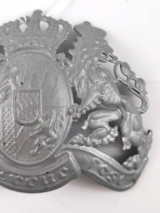 Bayern, Pickelhauben Emblem für Mannschaften, feldgraue Ausführung in Eisen, nachlackiert, Splintabstand mittig ca 56mm, Gesamtbreite des Emblem 104mm