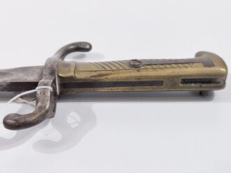 Bayern, Seitengewehr Modell 1871 mit Sägerücken, Regimentsstempel unterschiedlich,jedoch Mundblech mit bayrischer Abnahme. Lederscheide trocken, oberer Beschlag lose