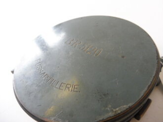 Bussolenrichtkreis Fussartillerie mit passendem Deckel, Hersteller Goertz Berlin, Originallack