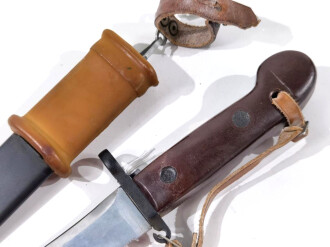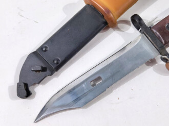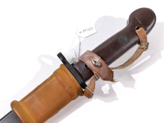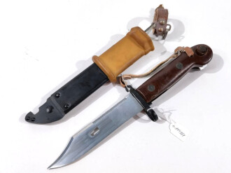 DDR NVA Seitengewehr AK 74 , mit Tragegurt, rotbrauner Plastegriff, Blechscheide,mit gelbem Gummischutz,