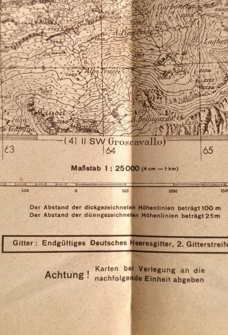 Deutsche Heereskarte "Ceresole Reale" Italien, Maße: 50 x 45 cm, datiert: 1944, gebraucht