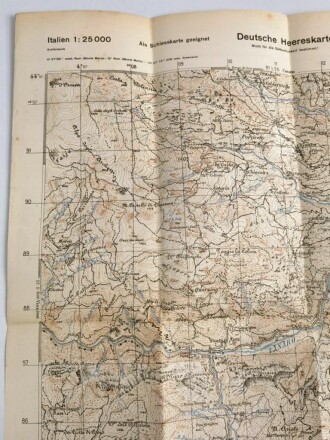Deutsche Heereskarte "Ormea" Italien, Maße: 48 x 45 cm, datiert 1944, gebraucht, Rückseitig bedruckt