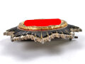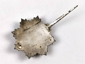 Deutsches Kreuz in gold. Schweres Stück mit 6 Nieten, Hersteller 21 auf der Innenseite der Nadel für Godet Berlin . getragenes Stück, die Emaille mit leichten Kratzern und zwei kleineren Ausbrüchen.