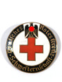Deutsches Rotes Kreuz, Brosche "Schwesternschaft", 2. Form, groß, 42 mm, rückseitig Klebereste und "Karlsruhe"